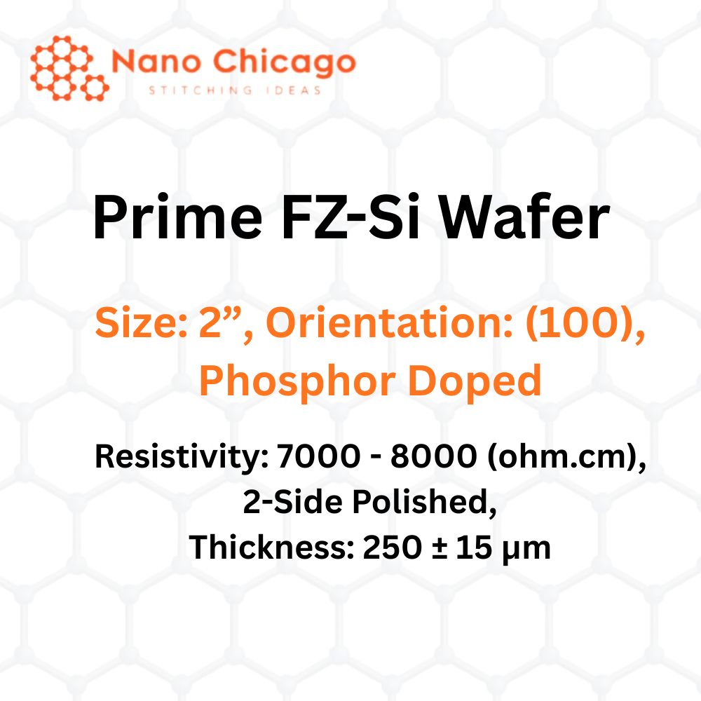 Prime FZ-Si Wafer, Size: 2”, Orientation: (100), Phosphor Doped, Resistivity: 7000 – 8000 (ohm.cm), 2-Side Polished, Thickness: 250 ± 15 μm